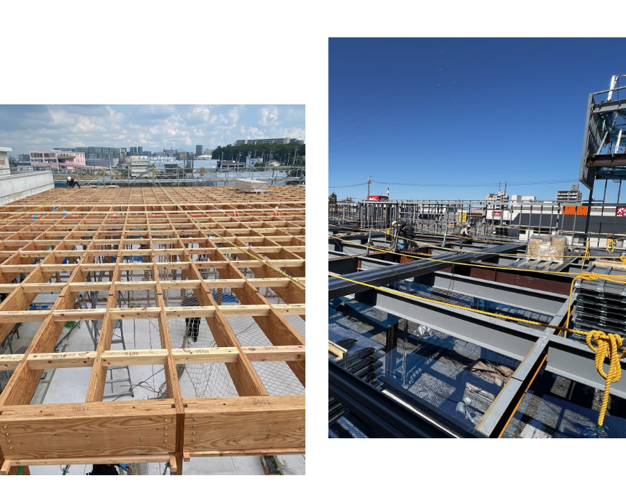 当社では、豊富な現場経験のある職人がアーク溶接やガス溶断などの高度な技術を駆使し、鉄骨部材の加工・接合・補強を正確かつ安全に施行します。さらに、鉄筋架台の組立などにも柔軟に対応しています。現場ごとに異なる条件を見極め、図面通りの精度を追求しながら強度と美観を両立し、一貫した施工体制で品質を高めるのが当社の強みです。